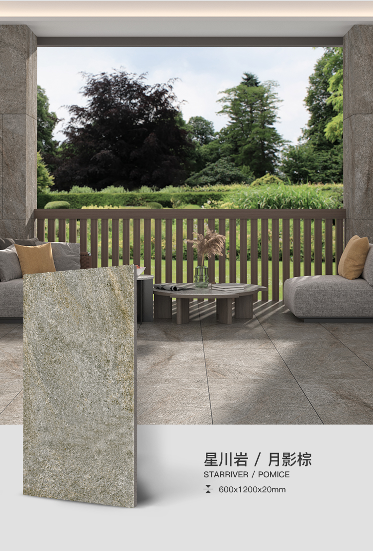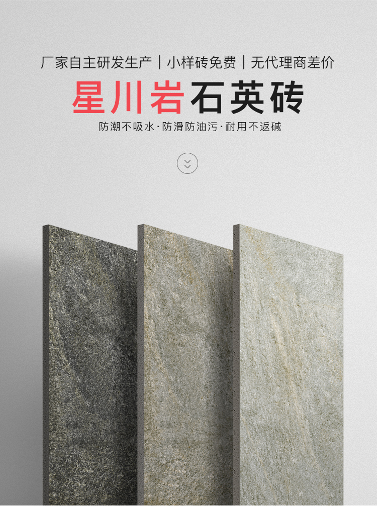 復(fù)刻板巖的自然層理紋路,觸感是細(xì)密的磨砂質(zhì)感,既保留石材的原生觸感,又因石英磚材質(zhì)更順滑耐用