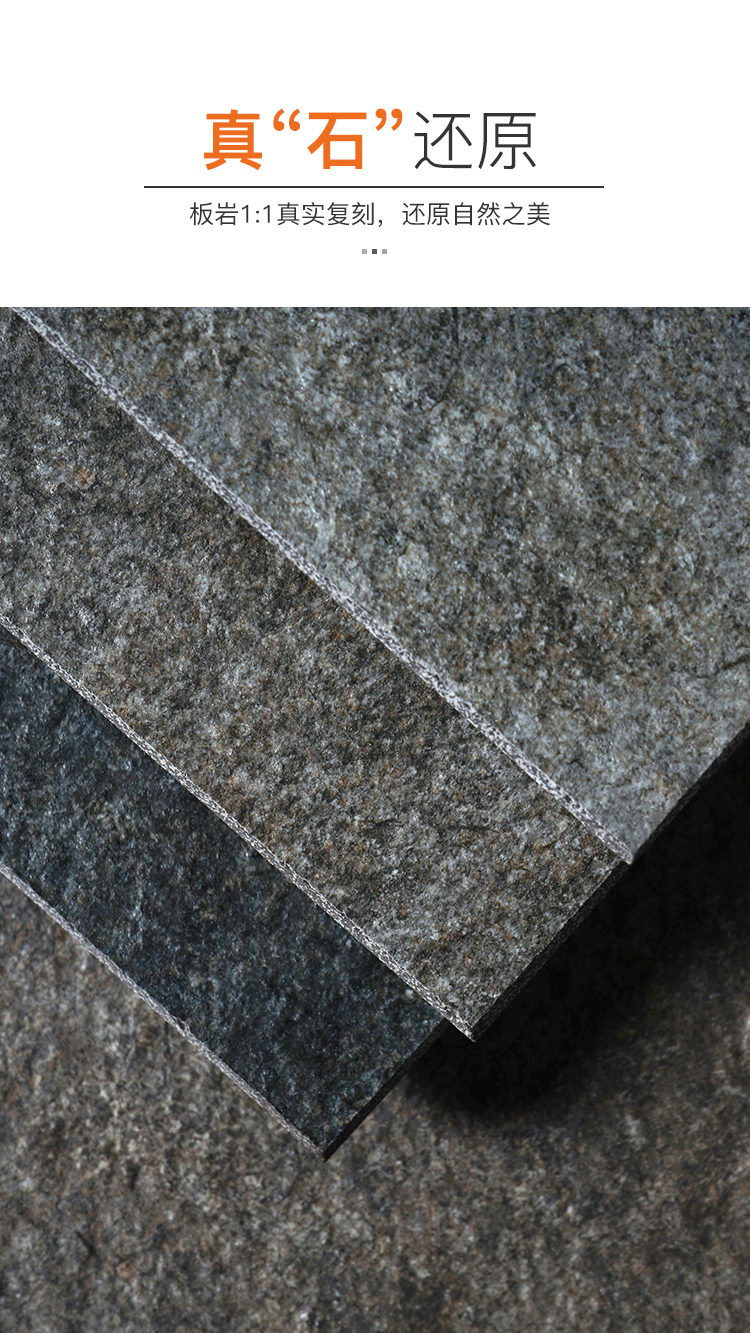 還原天然板巖的低調(diào)柔光/啞光質(zhì)感,契合其質(zhì)樸的風(fēng)格定位,同時(shí)避免反光干擾視覺